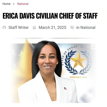 Harris County Precinct One Constable Alan Rosen has made a groundbreaking appointment, naming Erica Davis as the first African American woman to serve as a civilian Chief of Staff for a law enforcement agency in Harris County—potentially marking a first nationwide. Davis, elected in 2020, serves as a Trustee and Second Vice President on the Harris County Department of Education Board and is the Chairwoman of Governmental Affairs.
